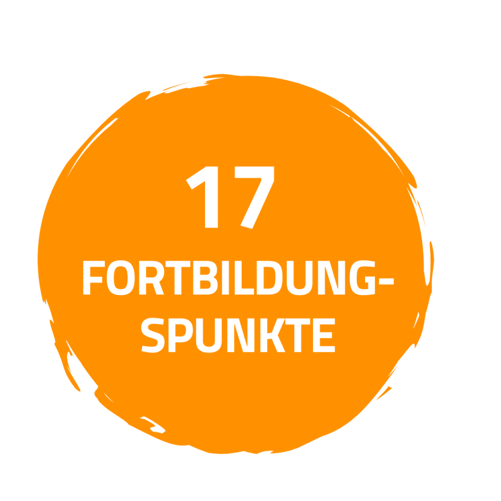 Du erhältst für die Teilnahme 17 Fortbildungspunkte.
