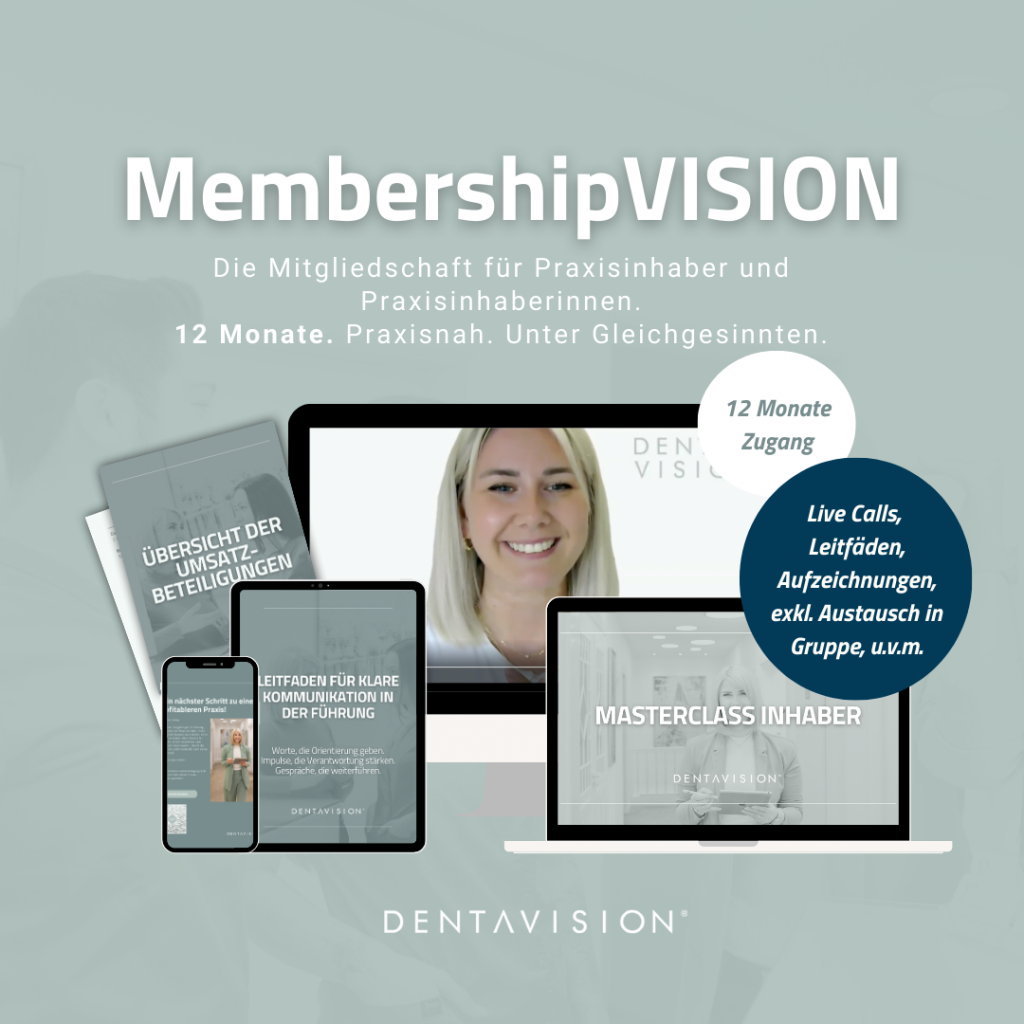 Die Membership VISION ist auf eine exklusive Gruppe von Praxisinhabern und Zahnärztinnen und Zahnärzten limitiert, damit echter Austausch, echte Tiefe und echter Fortschritt möglich sind.